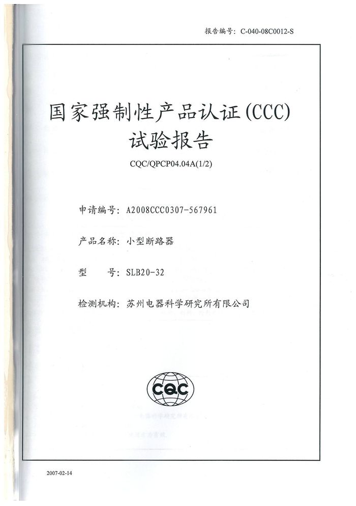 SLB20-32小型斷路器資質(zhì)證書