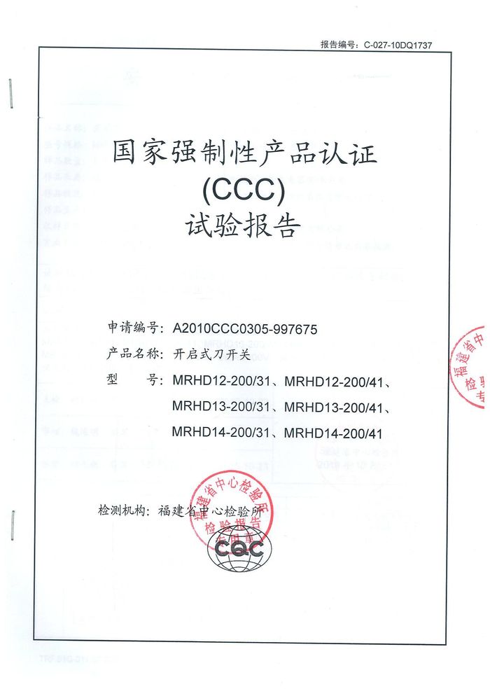 MRHD12-開啟式刀開關(guān)資質(zhì)證書