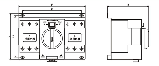 開關(guān)工作有三個狀態(tài)位置供用戶選擇:常用電源(N)合、雙分、備用電源(R】合,開關(guān)具
