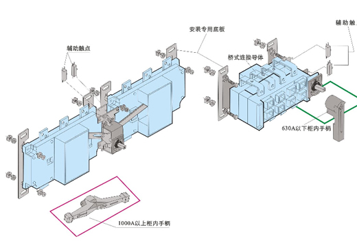 可提供橋式連接導(dǎo)體接通開關(guān)的進(jìn)線端或出線端。