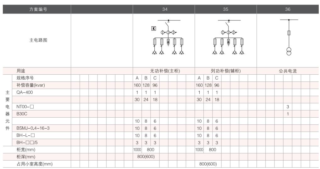 開關(guān)設(shè)備主電路方案共32組118個規(guī)格(見表2).不包括由于輔助電路的控制與保護(hù)的變化而派生的方案和規(guī)格。包括了發(fā)電、供用電和其它電力用戶的需要,額定工作電流為4000A,適合2500kVA及以下的配電變壓器選用。