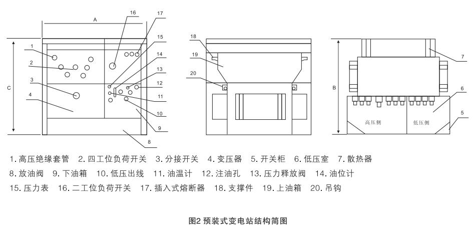 YB27系列預(yù)裝式變電站,適用于10kV環(huán)網(wǎng)供電、雙電源供電或終端供電系統(tǒng)中,作為變電、配電、計量、補償、控制和保護裝置。預(yù)裝式變電站內(nèi)除裝有變壓器外,高壓側(cè)還裝有四工位負荷開關(guān)、二工位負荷開關(guān)、后備保護熔斷器及插入式熔斷器;低壓側(cè)按用戶要求可裝控制電器、配電電器、補償裝置及計量表計等,以變壓器油作為絕緣和來弧介質(zhì)。