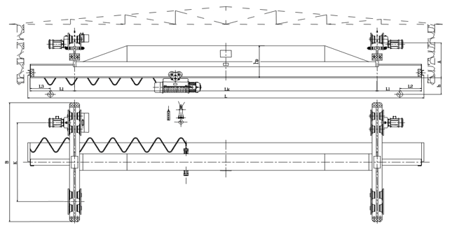 本產(chǎn)品為一般用途起重機,多用于機械制造裝配、倉庫、山洞等場所。起重機主要由橋架(金屬結構)、電動葫蘆、運行結構、電氣設備等四部分組成。